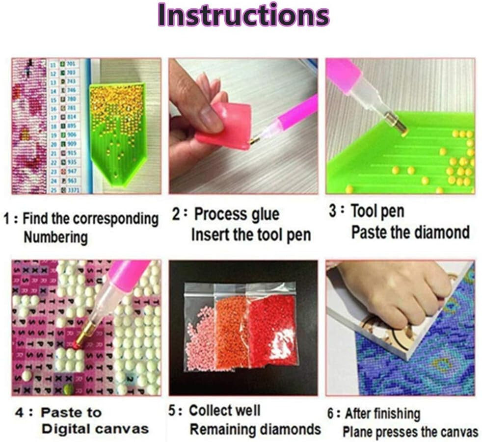 - HD płótno: diamentowe elementy zawierają wodoodporną farbę olejną. Litery i symbole nadrukowane na płótnie są łatwe do odczytania. Klej jest mocny, dzięki czemu diamenty nie odpadają. Do zestawu dołączono o 30% więcej diamentów, więc jest ich wystarczająco, aby ukończyć obraz.