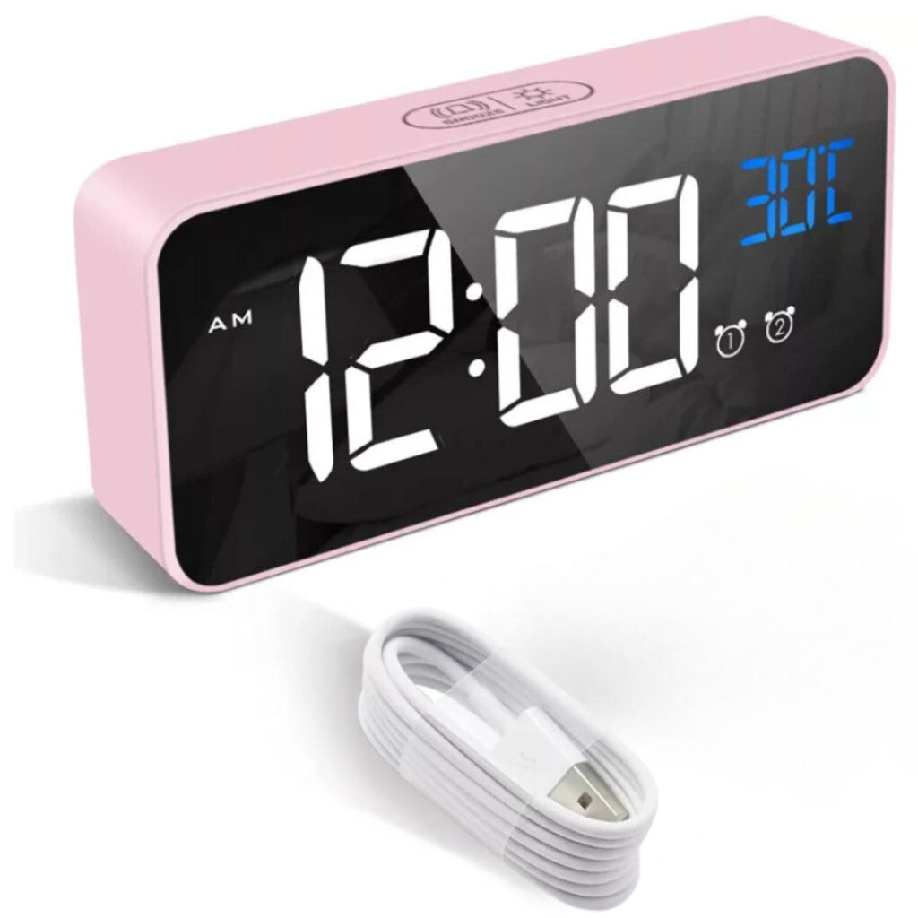 - Hermic Cyfrowy budzik - różowy, z wyświetlaczem LED i funkcją termometru