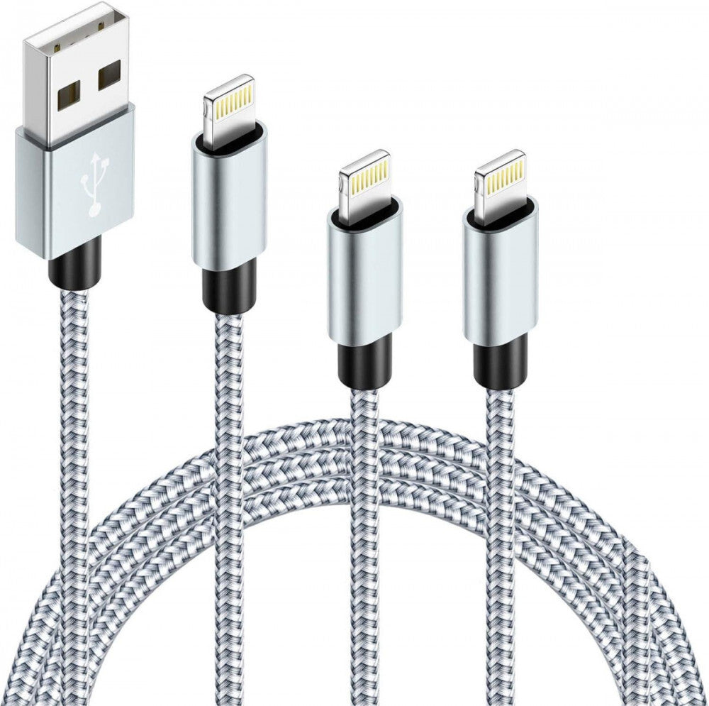 iPhone Ładowarka z plecionym nylonem 3 szt.: 1m+2m/2 szt. (biało-szare)