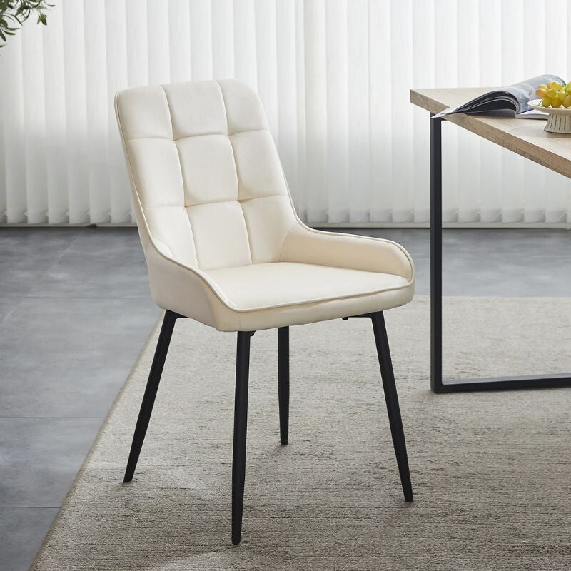 - Mccaslin Zestaw 2 Krzeseł do Jadalni – Kremowy Aksamit, Metalowe Nogi