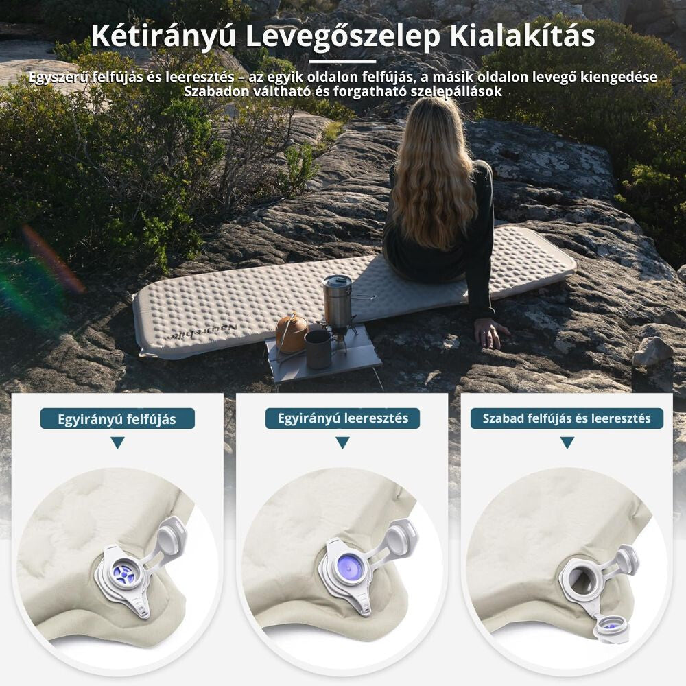 - Nadmuchiwany materac Naturehike to rozwiązanie premium na wędrówki i biwakowanie. Dzięki innowacyjnemu zastosowaniu materiałów i pięciowarstwowej konstrukcji zapewnia wygodne podparcie, doskonałą izolację termiczną oraz wyjątkowo niską wagę.