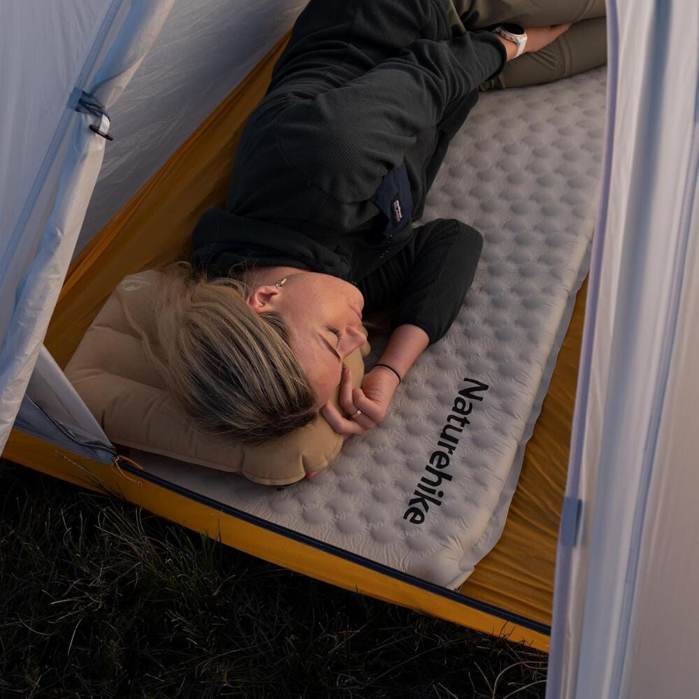 Piankowy materac powietrzny Naturehike można używać w różnych warunkach. Idealny do biwakowania, wędrówek i pikników, a także praktyczny do spania w samochodzie. Sprawdza się podczas krótkich przerw, a także w namiocie i przy hamaku. Może też służyć jako materac dla gości lub sprzęt awaryjny. - Konserwacja i przechowywanie