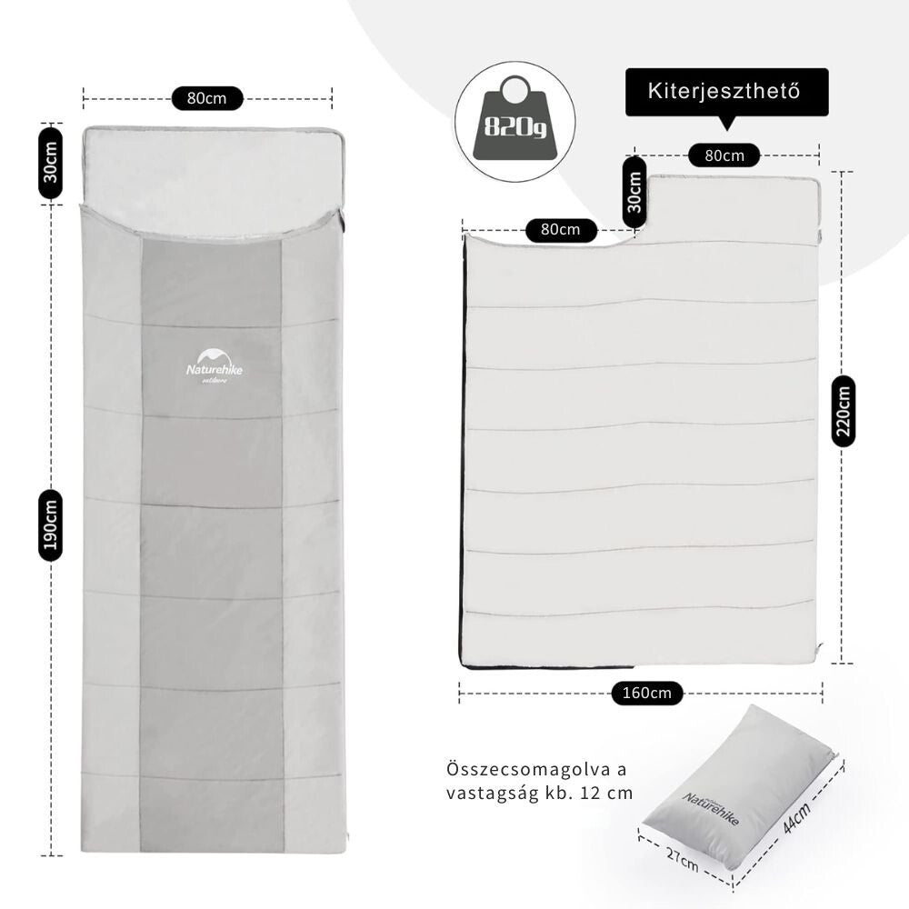 - Naturehike Ultralekki Letni Śpiwór z Kieszenią na Poduszkę – Możliwość Połączenia (820 g), Szary