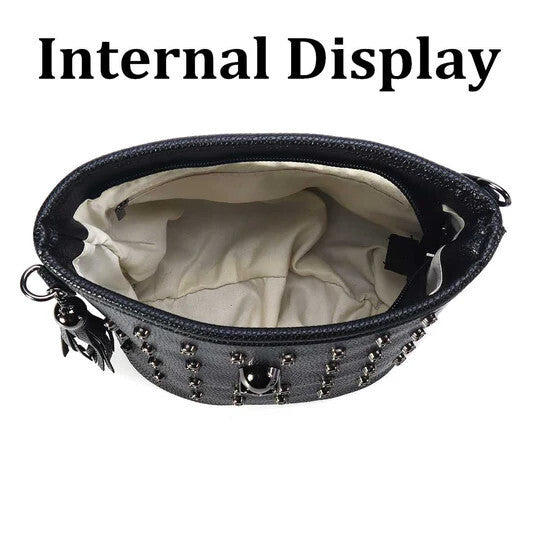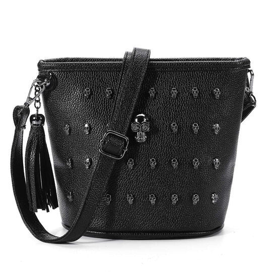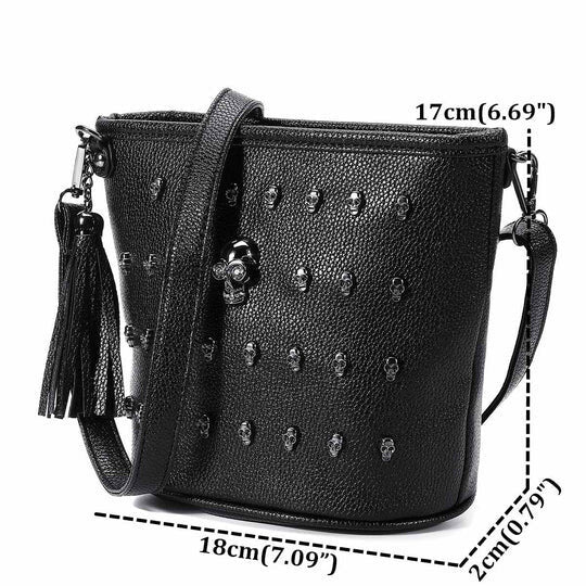 - Damska Czarna Torebka z Motywem Czaszki - Modna Torebka na Ramię na Co Dzień