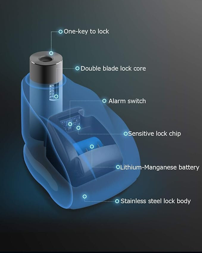 - Inteligentna funkcja alarmu: Dźwięk alarmu stopniowo narasta do 120 dB, skutecznie odstraszając złodziei.