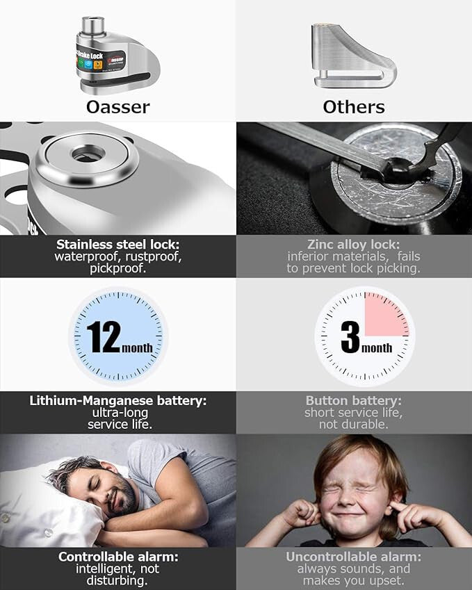 - Oasser Motocyklowa blokada tarczy hamulcowej - 120 dB z alarmem, Zabezpieczenie do motocykla
