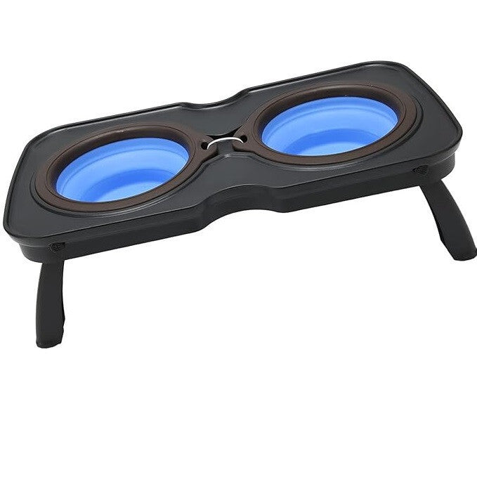 - 4everPet Składana Podwyższona Miska dla Psa – Niebieska i Ciemnoszara, 700 ml + 700 ml, Przenośna, Trwała i Praktyczna Rozwiązanie do Domu i Podróży