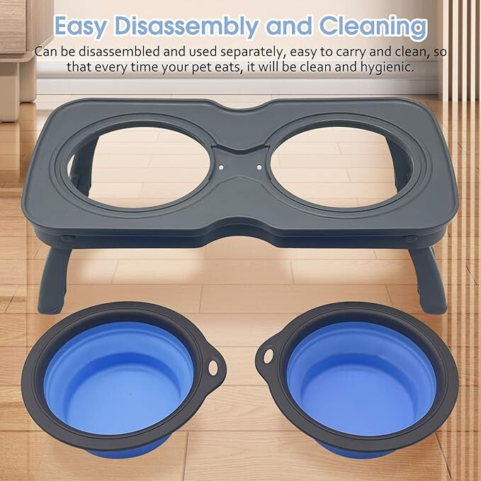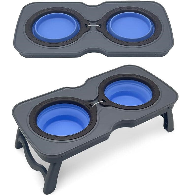 - Składana, Przenośna Podwójna Podróżna Miska dla Małych Zwierząt S (Jasnoszara i Niebieska)
