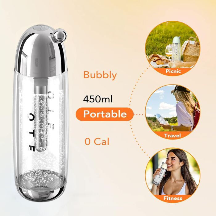 - OTE Przenośna Maszyna do Wody Sodowej - 20 Nabojów CO2, Srebrna, 450 ml