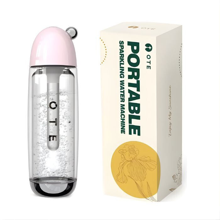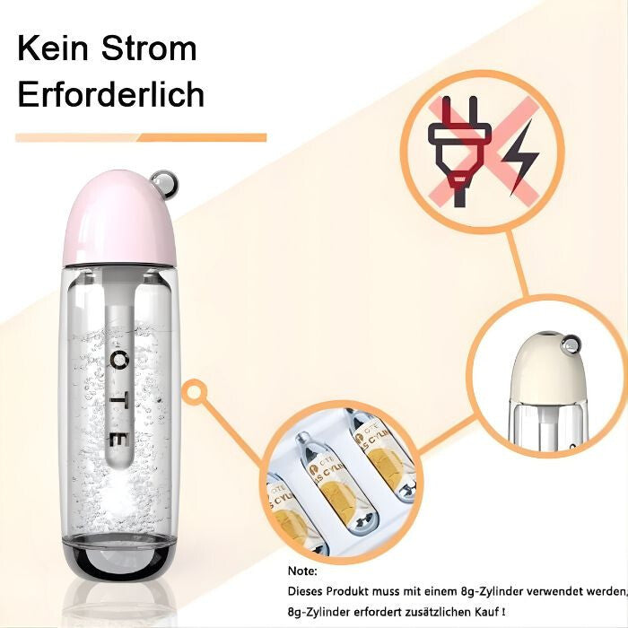 - OTE Przenośna Maszyna do Wody Sodowej - 20 Nabojów CO2, Różowa, 450 ml