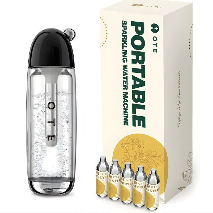 - OTE Przenośna Maszyna do Wody Sodowej do Domu – 20 Nabojów CO₂, Czarna, 450 ml