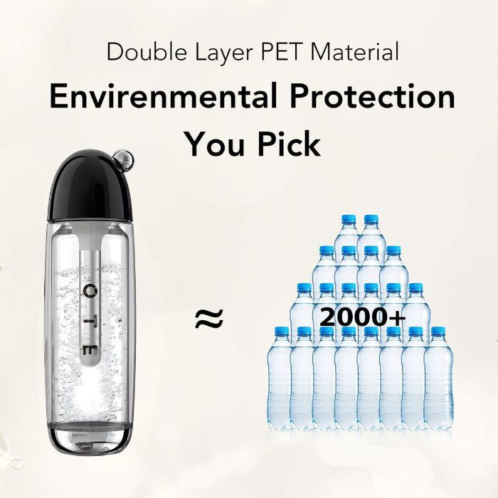 - Ekologiczne rozwiązanie: Butelka PET wolna od BPA, odporna na ciśnienie, nadaje się do użycia nawet 3000 razy, co znacznie zmniejsza ilość odpadów z jednorazowych plastikowych butelek. W ten sposób wybierasz bardziej zrównoważone i przyjazne dla środowiska rozwiązanie.