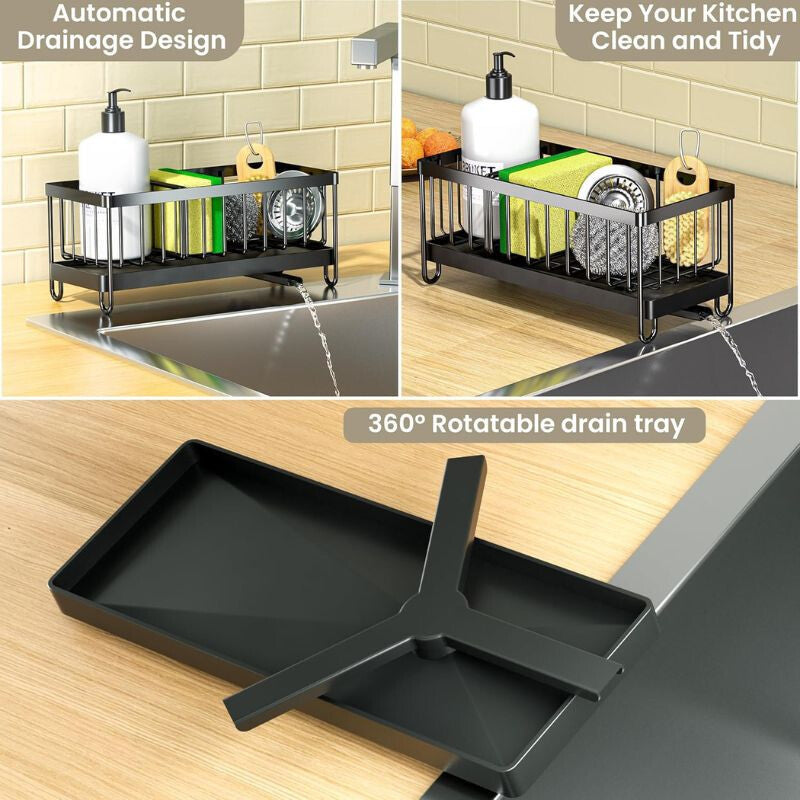 - PKBD Czarny Organizer ze Stali Nierdzewnej do Zlewu – Uchwyt na Gąbkę, Szczotkę i Ściereczkę