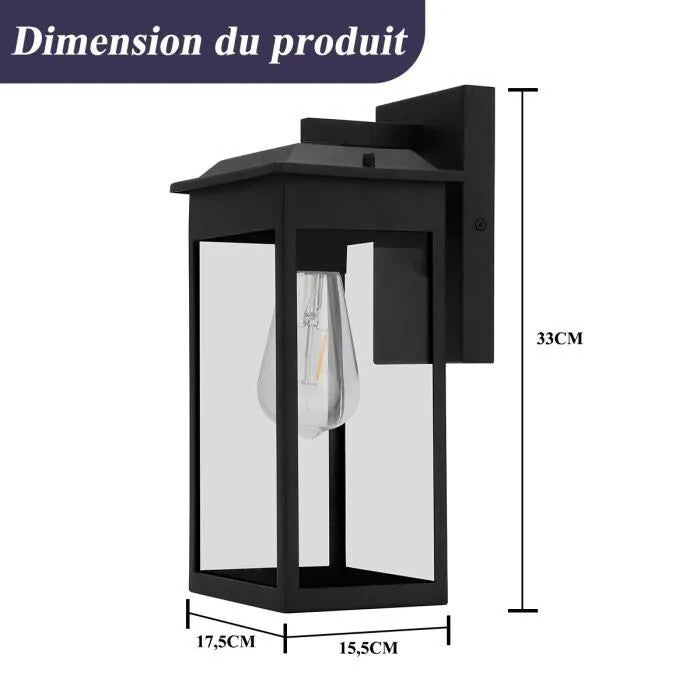 - Wysokiej jakości klosz szklany: Zewnętrzna lampa szklana z czarną, odporną na rdzę ramą ma prostą i elegancką formę, która pasuje do każdego wnętrza, przestrzeni zewnętrznej i ogrodu.