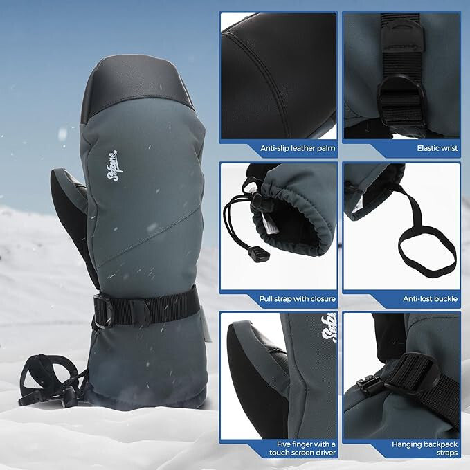 - Sefzone Dorosłe Rękawice Narciarskie Zimowe Wodoszczelne z Ekranem Dotykowym i Jednym Palcem M