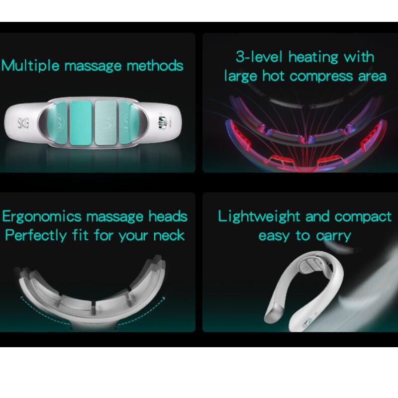 - Mikroprądowy masażer szyi SKG K5 Pro oferuje nowoczesne rozwiązanie na ból szyi, napięcie mięśni i stres – do użytku w domu, w biurze lub w podróży. Urządzenie wykorzystuje zaawansowaną technologię TENS (przezskórna elektryczna stymulacja nerwów), która stymuluje mięśnie za pomocą ponad 1000 mikroprądowych impulsów, wspomagając ich rozluźnienie, poprawę krążenia i redukcję bólu.