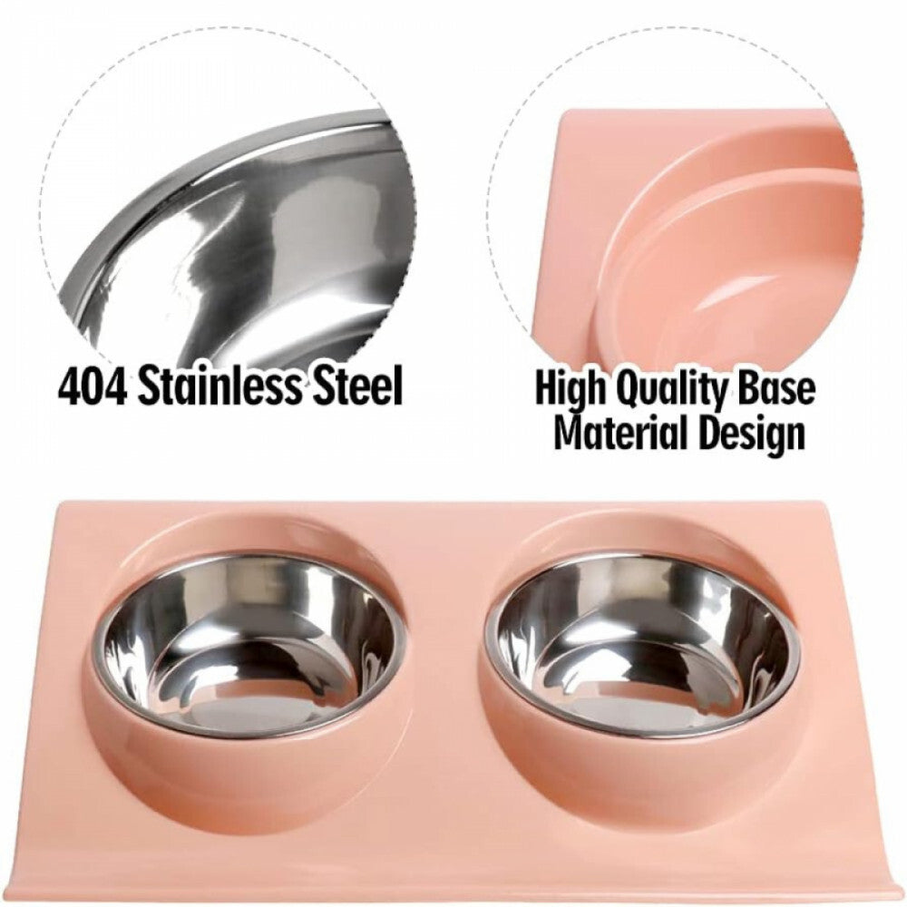 Zestaw zawiera: podwójne miski dla zwierząt z podstawką. Wymiary podstawki: wys. x szer. x głęb.: 29 x 19 x 7,5 cm; średnica miski dla kota: 14 cm (5,51 cala) - Kolor: Różowy