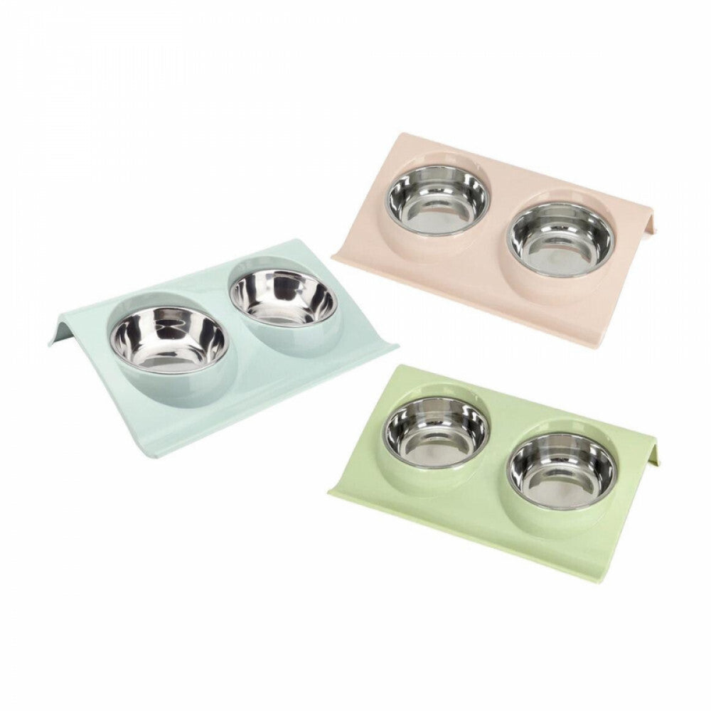 - Podwójna miska: praktyczna konstrukcja z podwójną tacą, łącząca karmę dla kota i miskę na wodę. Dostępne różne kolory dla więcej niż jednego zwierzaka. Nadaje się dla psów, kotów, szczeniąt i kociąt, idealna na suchą karmę, mokrą karmę, przysmaki lub wodę.