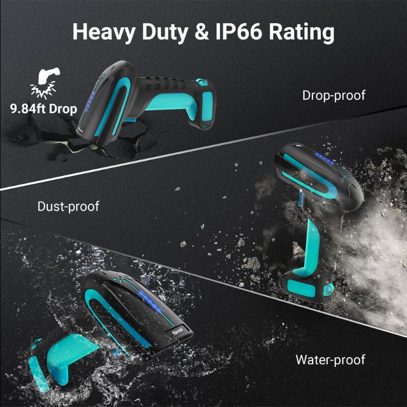 - Tera 8100 Bezprzewodowy Czytnik Kodów 1D/2D/QR – Bluetooth i USB, Duży Zasięg - Niebieski