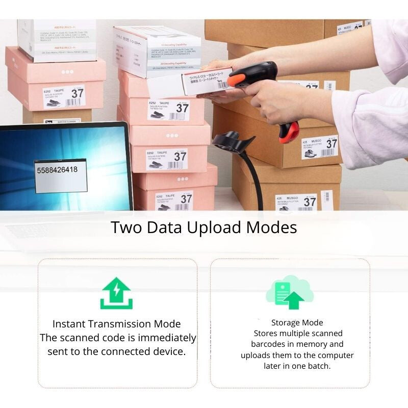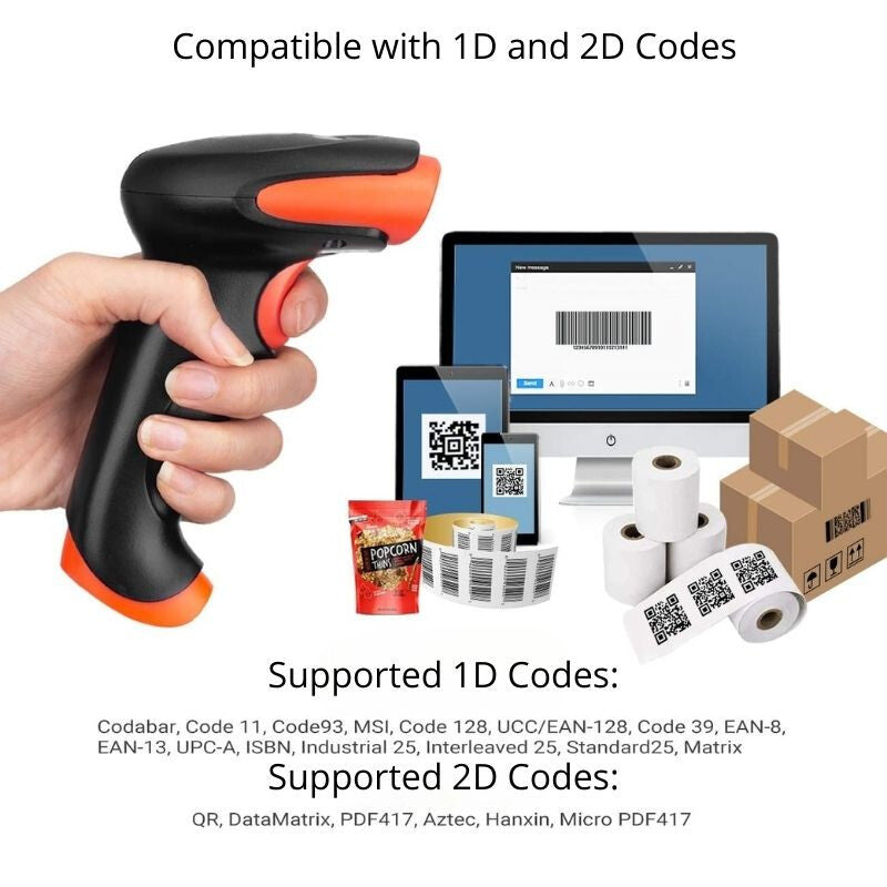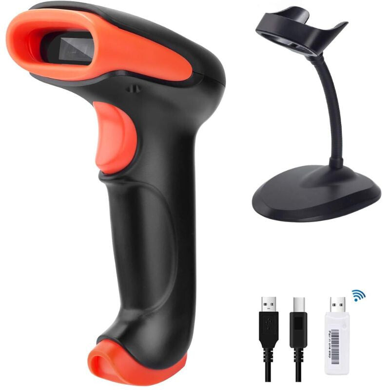 - Tera przewodowy i bezprzewodowy czytnik kodów 2D/1D – skaner kodów QR z ergonomicznym uchwytem i statywem