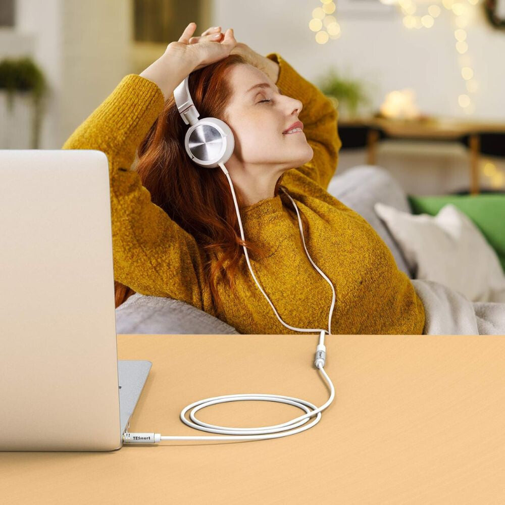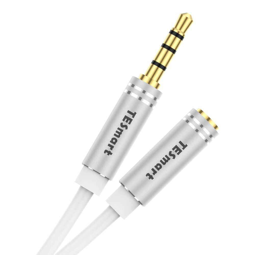 - TESmart Przedłużacz Słuchawek z Mikrofonem 3,5 mm TRRS – Do Telefonu i Komputera (2,5 m, Biały)