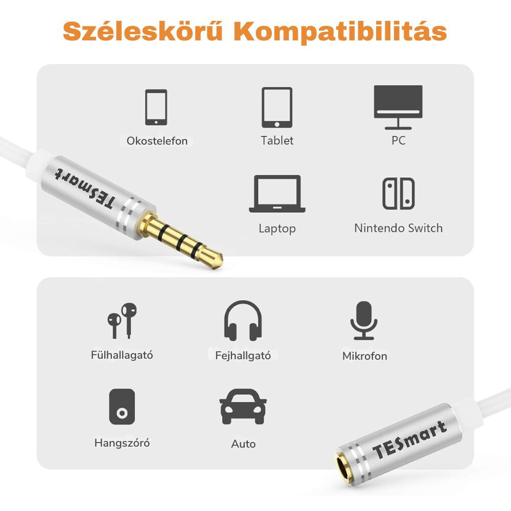 - TESmart 3,5 mm TRRS przedłużacz słuchawek z mikrofonem to idealne rozwiązanie, gdy kabel słuchawek lub zestawu słuchawkowego jest za krótki. Kabel pozwala zwiększyć odległość między urządzeniami audio, dzięki czemu wygodnie słuchasz muzyki, filmów lub prowadzisz rozmowy bez ograniczeń ruchu.