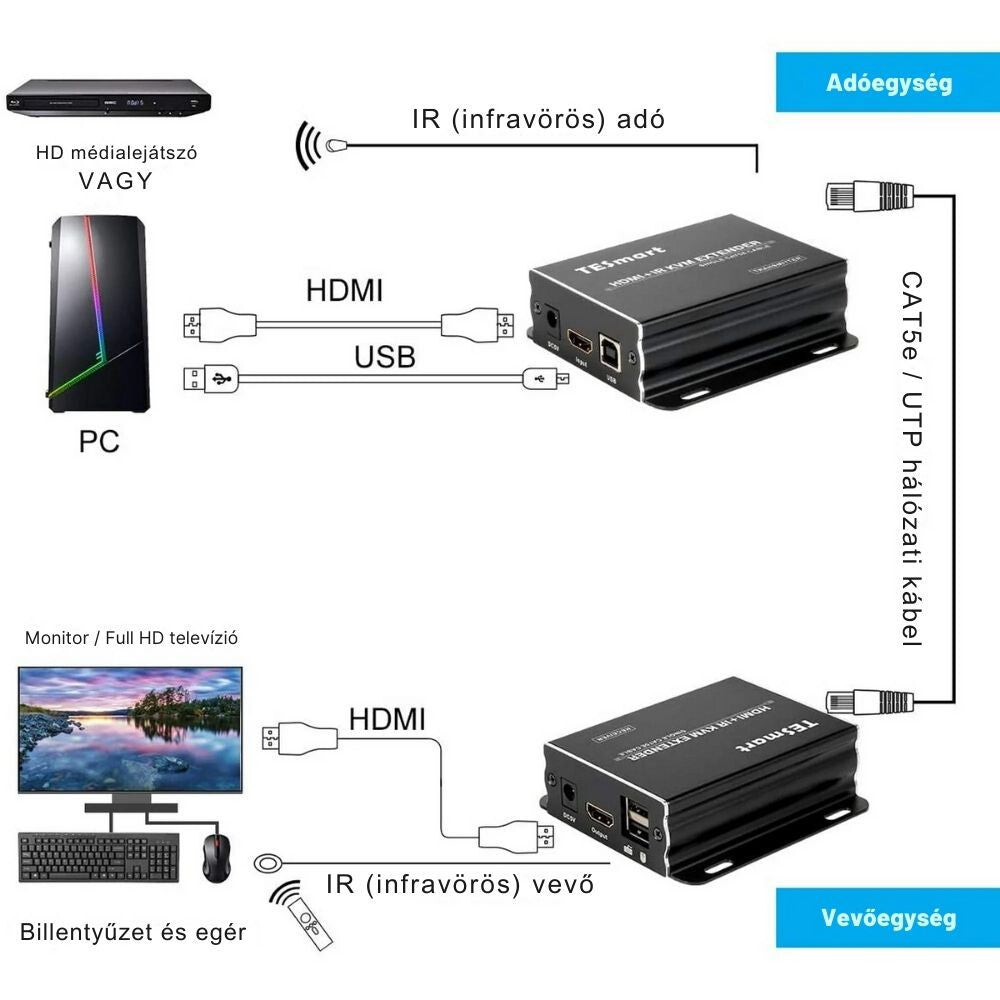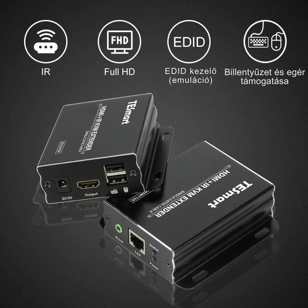 - TESmart HDMI KVM + IR extender 60 m Cat5e/6 – Full HD 1080p@60Hz