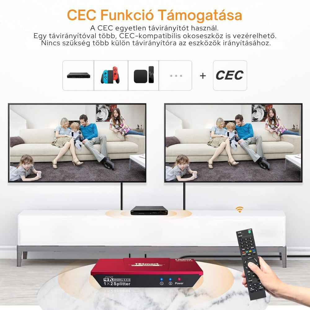 - TESmart Rozdzielacz HDMI – 1x2 (1 wejście 2 wyjścia), 4K@60Hz, EDID, CEC, HDCP 2.2
