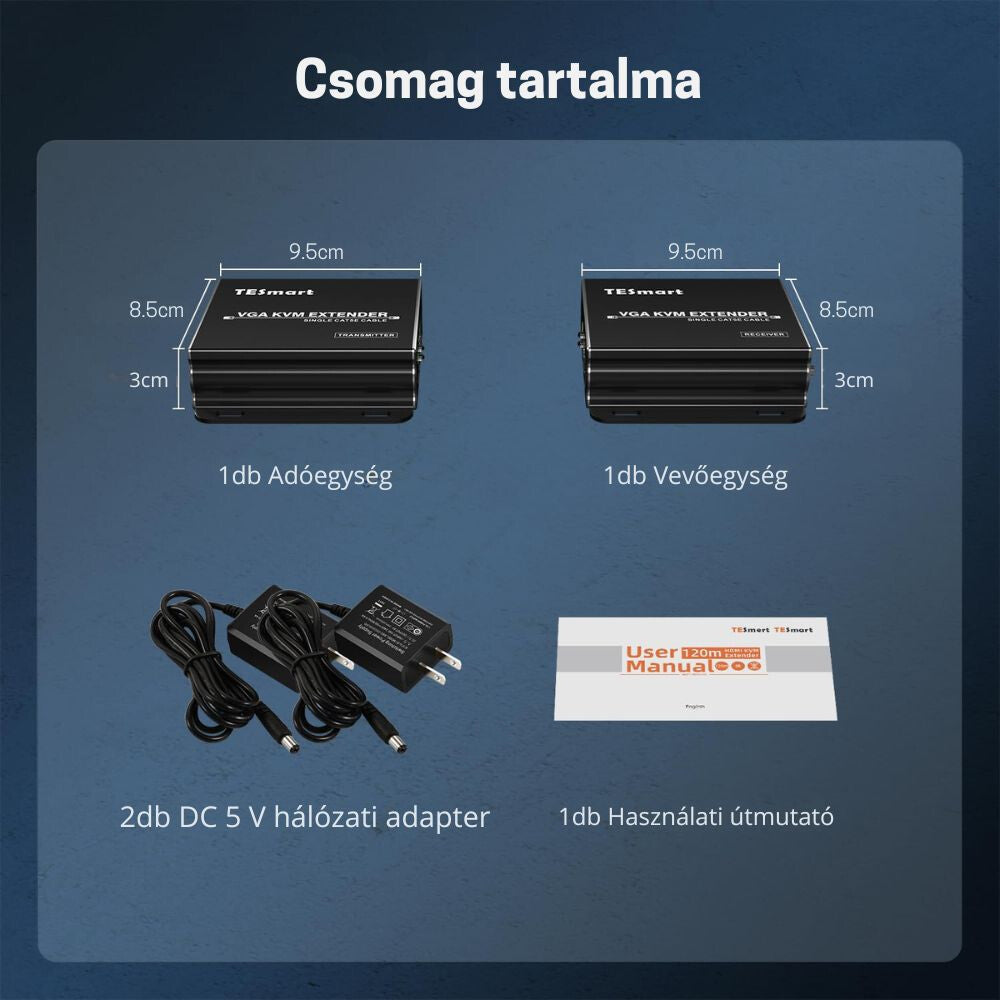 - TESmart VGA–KVM Extender – Kabel Cat5e/6, 1080p@60 Hz, 300 m, Obsługa EDID, TX/RX (Nadajnik i Odbiornik)