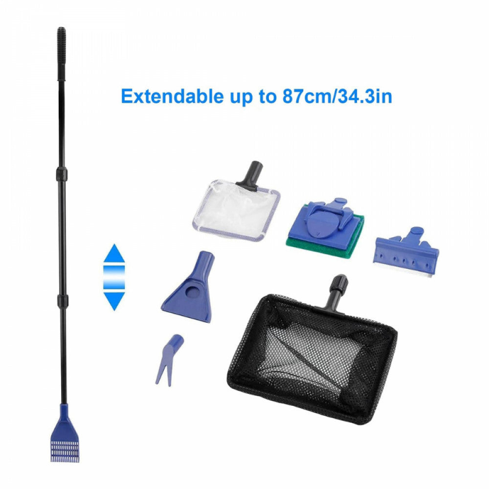 - Wielofunkcyjny zestaw do czyszczenia akwarium - z teleskopowym uchwytem, siatką i szczotkami