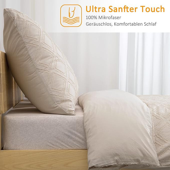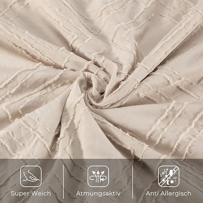 - TOCOMOA Pościel z Frędzlami 2-częściowa 135x200 cm (Beżowa)