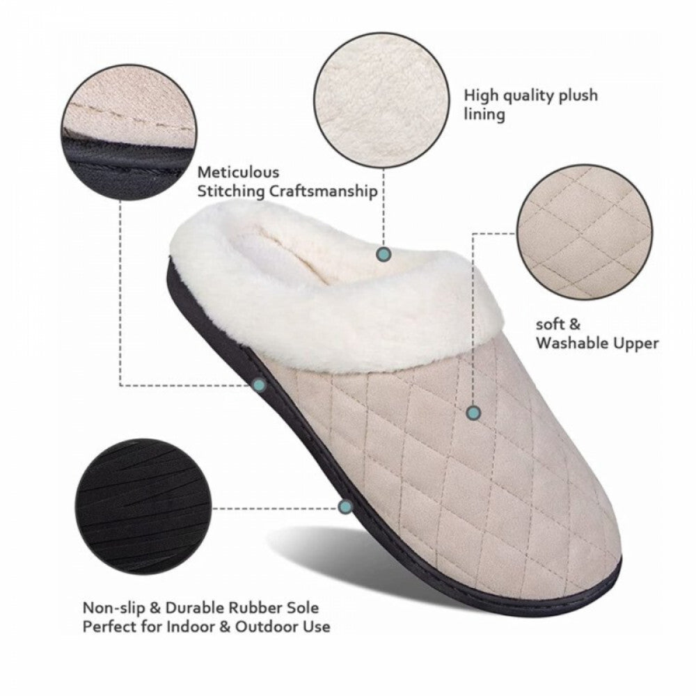 - Ultraideas zimowe kapcie z pianką memory – rozmiar 46-47, beżowe wygodne kapcie domowe z antypoślizgową podeszwą
