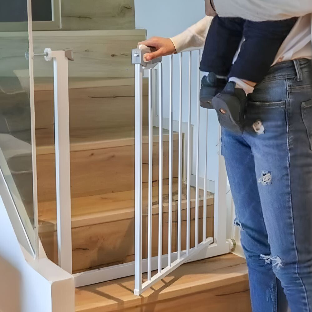 - Ciekawość małych dzieci nie zna granic, dlatego niezbędne jest bezpieczne zamknięcie niebezpiecznych miejsc – na przykład schodów, drzwi, korytarzy. Ta solidna bramka zabezpieczająca wykonana z metalu skutecznie chroni maluchy przed upadkiem, urazami oraz przed dostępem do miejsc zabronionych. Dzięki systemowi montażu bez wiercenia jest szybko i łatwo instalowana, idealnie pasując do każdego domu.
