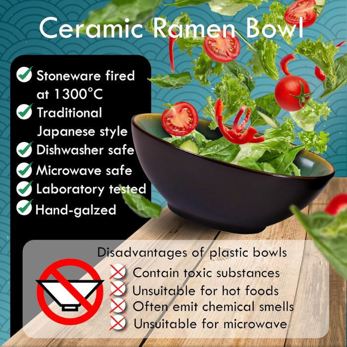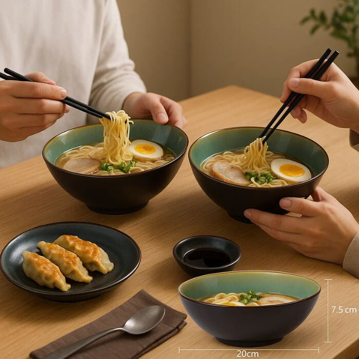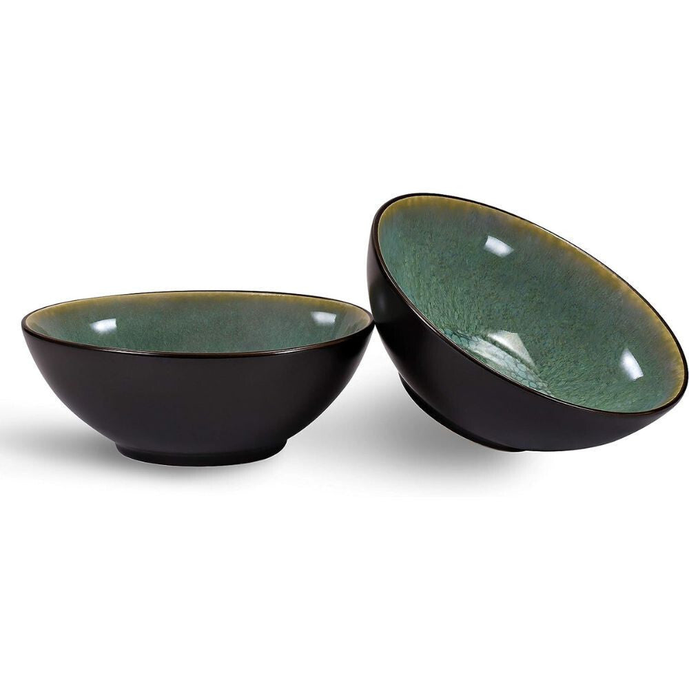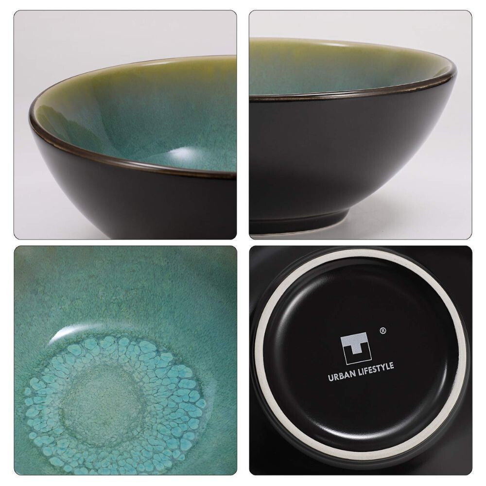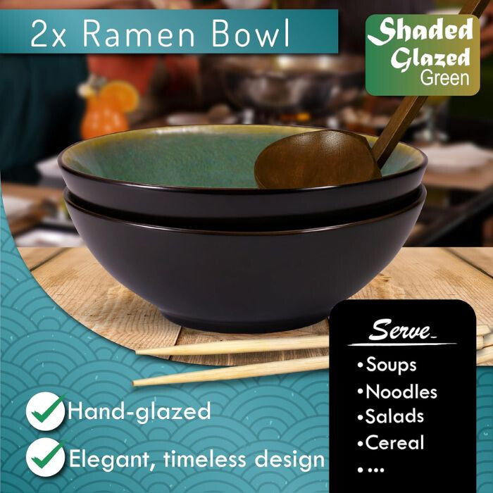 - Zestaw ceramicznych misek Urban Lifestyle do ramenu – 2 ręcznie szkliwione porcelanowe miski do potraw azjatyckich (czarno-zielone, 20x7,5 cm)