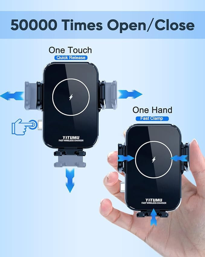 Uchwyt YITUMU bezprzewodowej ładowarki samochodowej wyposażony jest w wzmocnione miedziane cewki, maksymalna moc ładowania to aż 15 W, a urządzenie jest kompatybilne ze wszystkimi telefonami obsługującymi ładowanie bezprzewodowe Qi.
