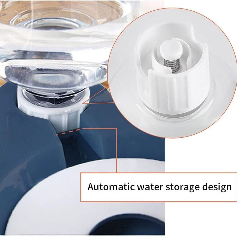- Automatyczne uzupełnianie wody – Butelka na wodę automatycznie napełnia miskę, dzięki czemu zwierzę zawsze ma dostęp do świeżej wody.